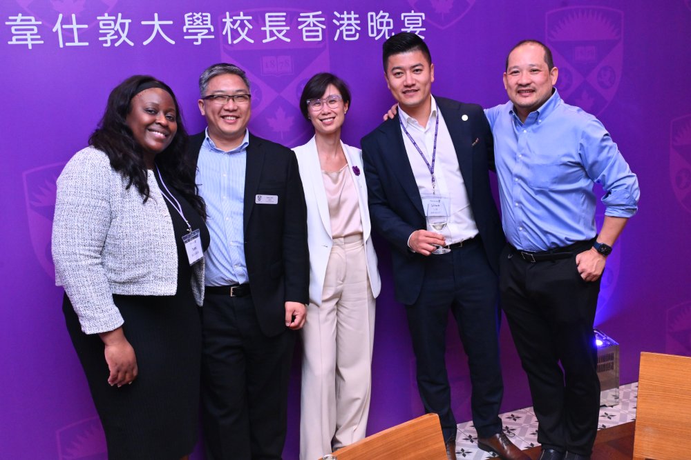 Five People Smiling For Photo In Front Of Western Banner