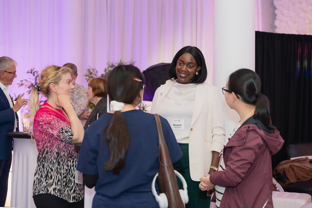 Panelist Margaret Mutumba Speaks With Alumni In Group
