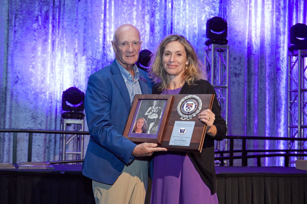 Paula Schwan Receiving Her WMAA Hall Of Fame Inductee Plaque From Bob Vigars