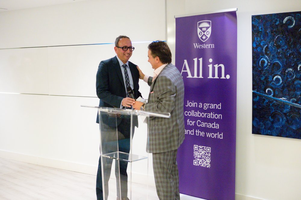 Perry Dellelce And Mohamed Khimji At The Podium