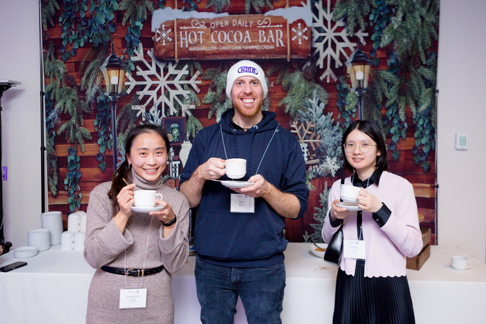 Three Guests Standing And Holding A Cup