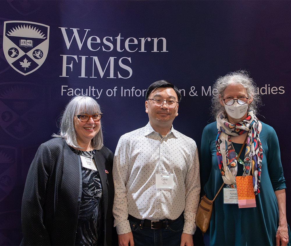 Three People Smiling At Camera In Front Of FIMS Backdrop