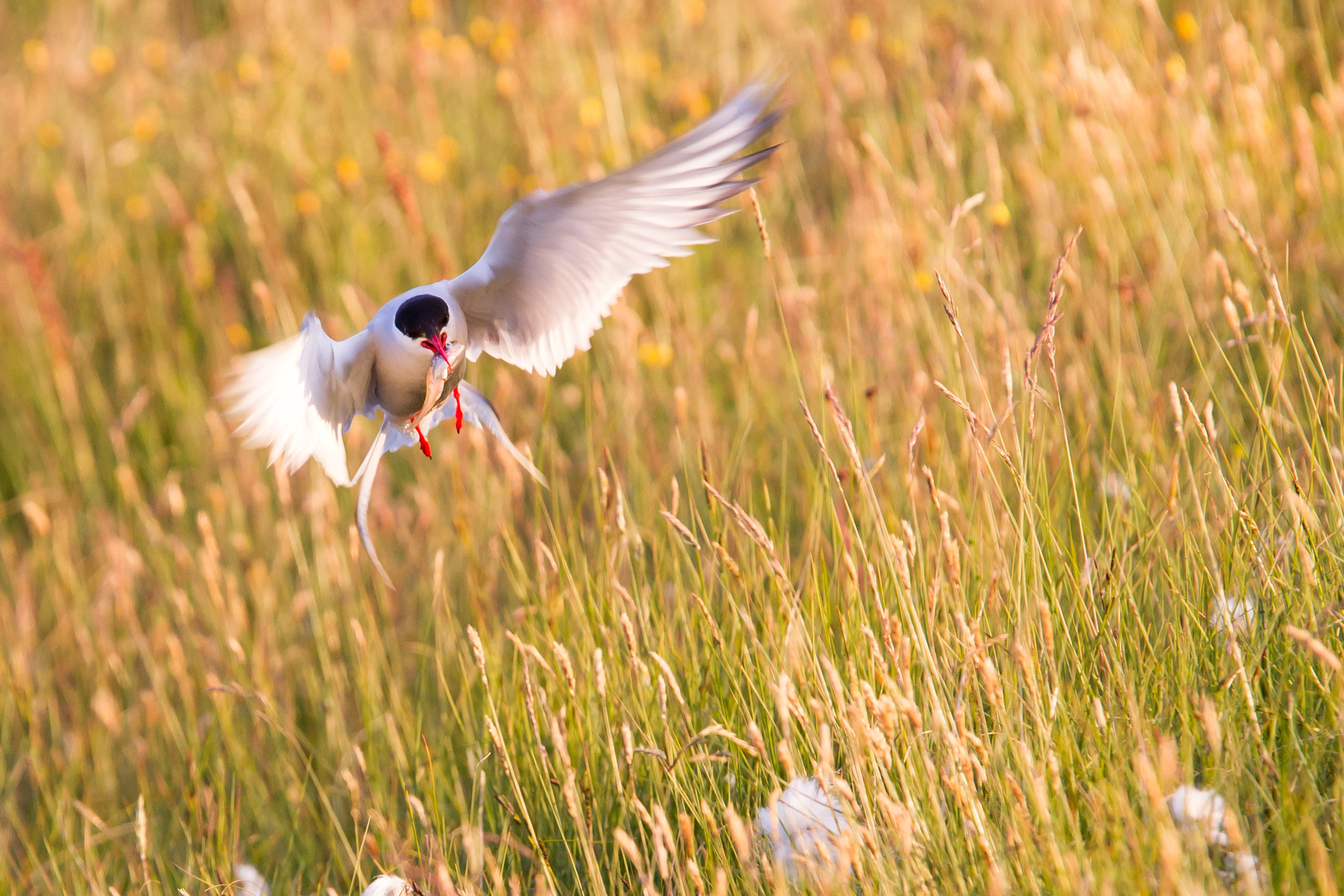 Arctic Tern With A Fish Warm Evening Sun
